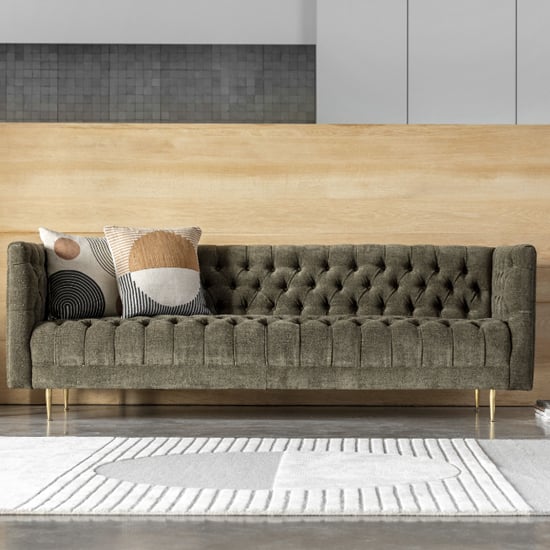 Dumai Fabric 3 Seater Sofa In Moss Green